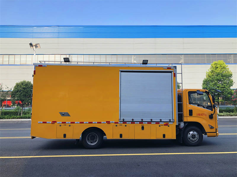 上裝配置:定制復(fù)合箱體,帶降噪功能,不銹鋼內(nèi)飾,75WK柴油發(fā)動機,雙風(fēng)機組合,定制控制系統(tǒng),160米繞線機,紫外光大小燈鏈各一組,箱體帶冷暖空調(diào),氣動遮陽板,不銹鋼儲物柜,兩側(cè)帶工具箱,更多配置